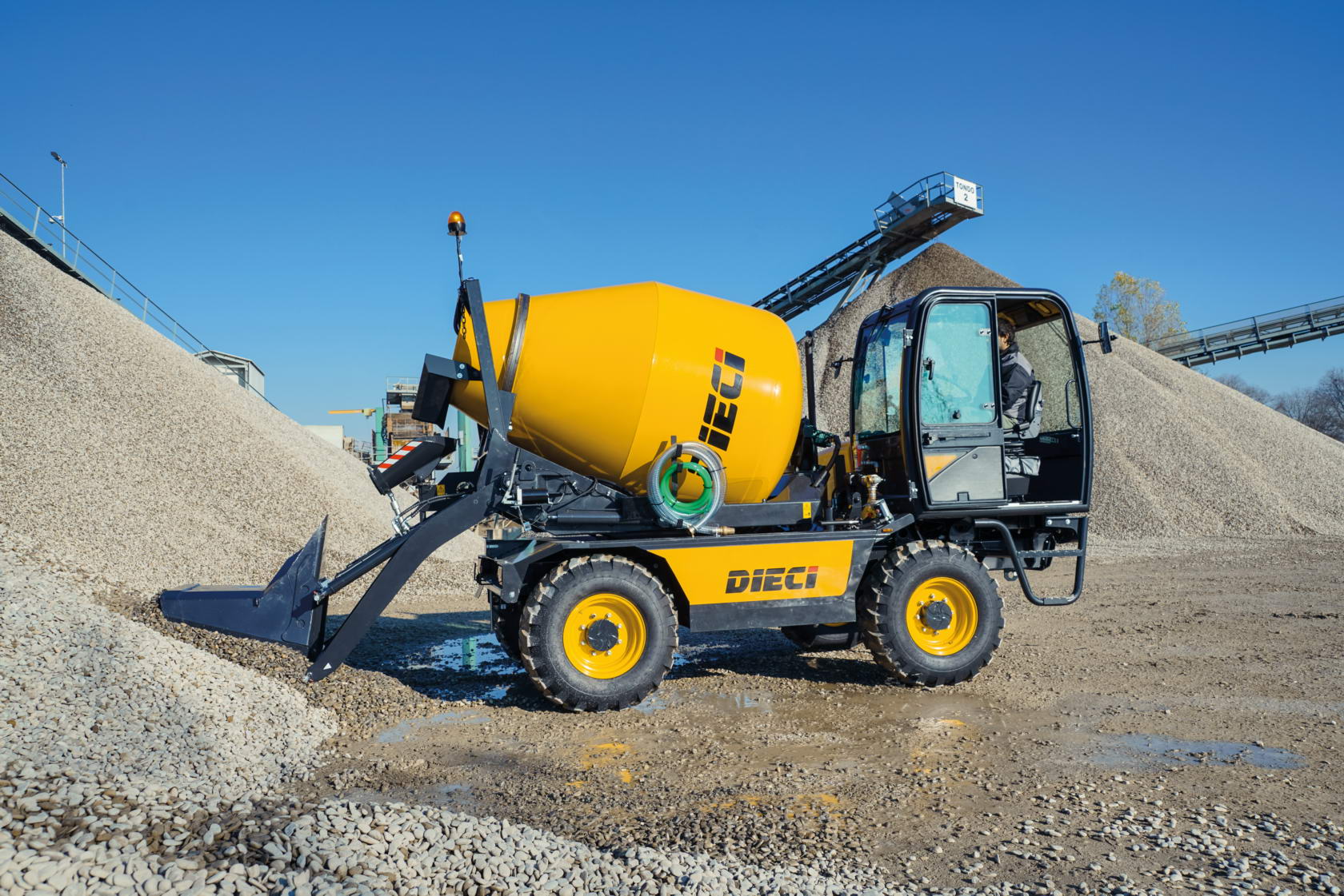 Les auto bétonnières (ou bétonnières auto chargeuses) DIECI garantissent la pleine autonomie dans la préparation du béton, même dans les endroits éloignés ou difficiles d'accès. Le tambour, en acier double épaisseur, est indéformable et longue durée. Les pales à spirale permettent d’obtenir un produit particulièrement homogène, avec toutes les sections qui continuent à être malaxées, et de haute qualité. Elles sont conçues pour un usage constant et intensif.