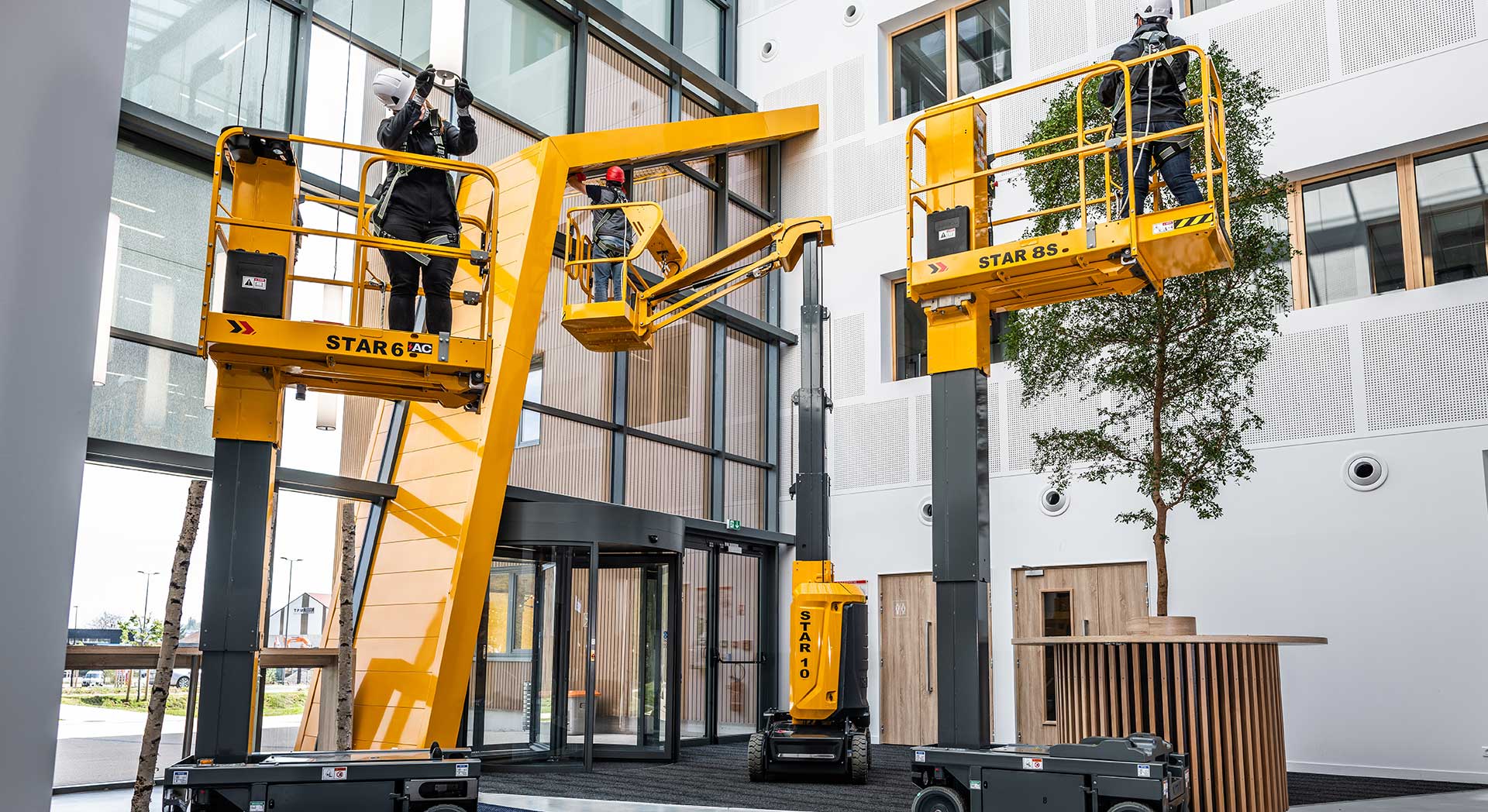 Les mâts verticaux Star sont reconnus pour leur grande agilité. Leurs dimensions compactes, leur moteur AC et leur élévation droite les rendent très faciles à conduire dans les espaces les plus étroits, que ce soit en intérieur ou en extérieur sur des surfaces stabilisées. L'extension de la plateforme permet de bénéficier d’un espace additionnel. Les modèles équipés d’un pendulaire permettent de surplomber des obstacles et ont un déport arrière exceptionnel de 0 cm, ce qui les rend très simples à manœuvrer. Pour des travaux de distribution et logistique, le modèle PICKING est équipé d'un plateau à élévation électrique.